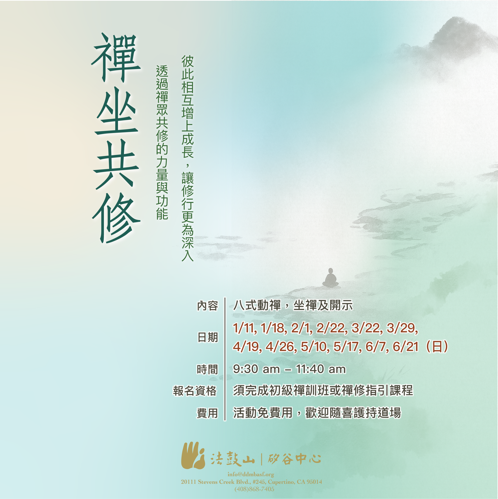 【Content】 Eight-form moving meditation, sitting meditation, and dharma talks