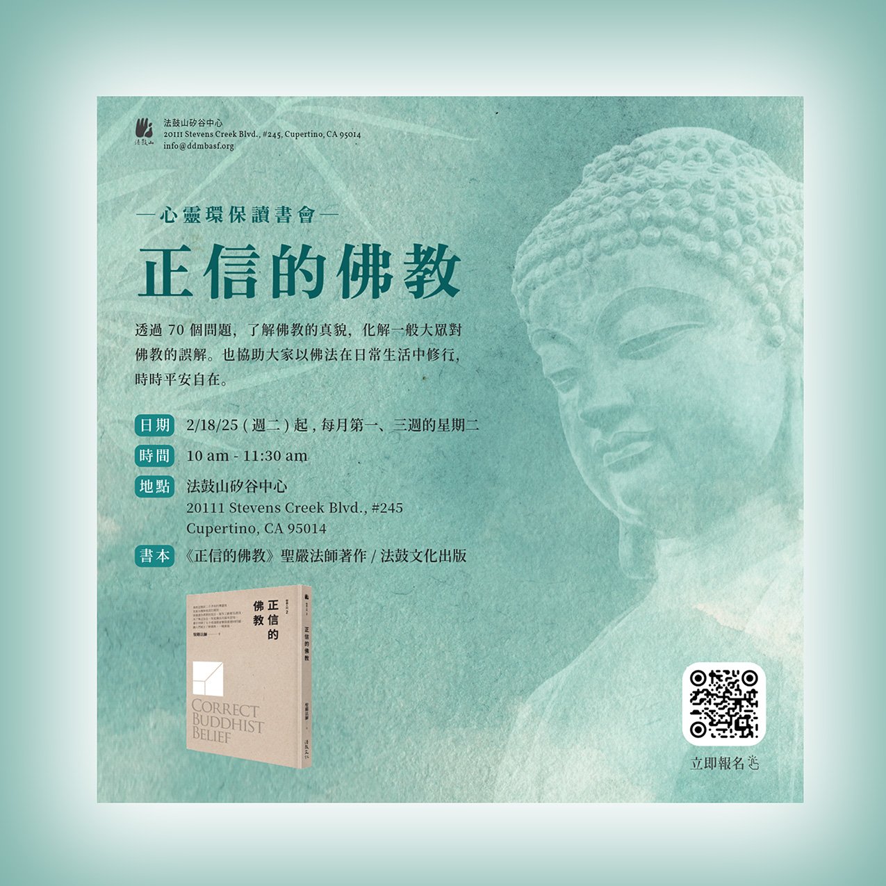 Please join our book club to study and discuss “Correct Buddhist Belief” by Master Sheng Yen. We will learn what Buddhism is and clarify common misconceptions through an exploration of Master Sheng Yen’s perspectives on seventy questions about Buddhism. Let us take this opportunity to learn how to better practice Buddhadharma in our everyday lives and experience peace and freedom of mind at all times.