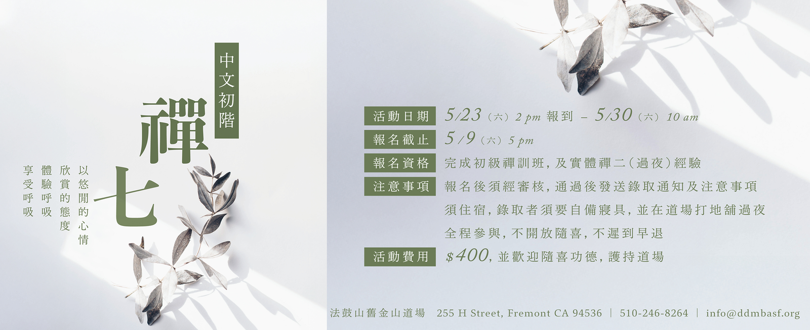 【道場公告】 一. 4/12、4/18 和 4/19 三日,適逢舉辦精進禪一及禪二,舊金山道場(Fremont)將暫停參訪。 二.《福田班》進行的日期(4/5, 5/3, 7/12, 8/1, 9/13, 10/4, 11/1, 12/13, 2027/1/24),舊金山道場(Fremont)將暫停參訪。 聖嚴法師《108自在語》 1. 需要的不多,想要的太多。 2. 知恩報恩為先,利人便是利己。 3. 盡心盡力第一,不爭你我多少。 4. 慈悲沒有敵人,智慧不起煩惱。 5. 忙人時間最多,勤勞健康最好。 6. 布施的人有福,行善的人快樂。 7. 心量要大,自我要小。 8. 要能放下,才能提起。提放自如,是自在人。 9. 識人識已識進退,時時身心平安; 知福惜福多培福,處處廣結善緣。 10. 提得起放得下,年年吉祥如意; 用智慧種福田,日日都是好日。 11. 身心常放鬆,逢人面帶笑; 放鬆能使我們身心健康,帶笑容易增進彼此友誼。 12. 話到口邊想一想,講話之前慢半拍。 不是不說,而是要惜言慎語。 13. 在生活中,不妨養成:「能有,很好;沒有,也沒關係」的想法, 便能轉苦為樂,便會比較自在了。 14. 四安:安心、安身、安家、安業。 15. 四要:需要、想要、能要、該要。 16. 四感:感恩、感謝、感化、感動。 17. 四它:面對它、接受它、處理它、放下它。 18. 四福:知福、惜福、培福、種福。 19. 能要、該要的才要;不能要,不該要的絕對不要。 20. 感恩能使我們成長,報恩能助我們成就。 21. 感謝給我們機會,順境、逆境,皆是恩人。 22. 遇到好事,要隨喜、讚嘆、鼓勵,並且虛心學習。 23. 少批評、多讚美,是避免造口業的好方法。 24. 平常心就是最自在、最愉快的心。 25. 踏實地走一步路,勝過說一百句空洞的漂亮語。 26. 知道自己的缺點愈多,成長的速度愈快,對自己的信心也就愈堅定。 27. 多聽多看少說話,快手快腳慢用錢。 28. 唯有體驗了艱苦的境遇,才會有精進奮發的心。 29. 踏踏實實做人,心胸要廣大;穩穩當當做事,著眼宜深遠。 30. 忙而不亂,累而不疲。 31. 忙得快樂,累得歡喜。 32. 「忙」沒關係,不「煩」就好。 33. 工作要趕不要急,身心要鬆不要緊。 34. 應該忙中有序的趕工作,不要緊張兮兮的搶時間。 35. 不要以富貴貧賤論成敗得失,只要能盡心盡力來自利利人。 36. 任勞者必堪任怨,任事者必遭批評。怨言之下有慈忍,批評之中藏金玉。 37. 隨遇而安,隨緣奉獻。 38. 成功的三部曲是:隨順因緣、把握因緣、創造因緣。 39. 見有機緣宜把握,沒有機緣要營造,機緣未熟不強求。 40. 人生的起起落落,都是成長的經驗。 41. 用智慧處理事,以慈悲關懷人。 42. 以智慧時時修正偏差,以慈悲處處給人方便。 43. 慈悲心愈重,智慧愈高,煩惱也就愈少。 44. 面對許多的情況,只管用智慧處理事,以慈悲對待人, 而不擔心自己的利害得失,就不會有煩惱了。 45. 心隨境轉是凡夫;境隨心轉是聖賢。 46. 大鴨游出大路,小鴨游出小路,不游就沒有路。 47. 山不轉路轉,路不轉人轉,人不轉心轉。 48. 「精進」不等於拼命,而是努力不懈。 49. 船過水無痕,鳥飛不留影,成敗得失都不會引起心情的波動, 那就是自在解脫的大智慧。 50. 給人方便等於給自己方便。 51. 甘願吃明虧,是仁者;受辱吃暗虧,是愚蠢。 52. 壓力通常來自對身外事物過於在意,同時也過於在意他人的評斷。 53. 用感恩的人、用報恩的心,來做服務的工作,便不會感到倦怠與疲累。 54. 隨時隨地心存感激,以財力、體力、智慧、心力、來做一切的奉獻。 55. 生命的意義是為了服務,生活的價值是為了奉獻。 56. 人生的目標,是來受報、還願、發願的。 57. 人的價值,不在壽命的長短,而在貢獻的大小。 58. 過去已成虛幻,未來尚是夢想,把握現在最重要。 59. 不用牽掛過去,不必擔心未來,踏實於現在,就與過去和未來同在。 60. 智慧,不是知識、不是經驗、不是思辯,而是超越自我中心的態度。 61. 積極人生,謙虛滿分;自我愈大,不安愈多。 62. 上等人安心於道,中等人安心於事,下等人安心於名利物欲。 63. 你是有那些身分的人,就應該做那些身分的事。 64. 在安定和諧中、把握精彩的今天,走出新鮮的明天。 65. 擔心,是多餘的折磨;用心,是安全的動力。 66. 財富如流水,佈施如挖井。井愈深,水愈多;佈施的愈多,財富則愈大。 67. 面對生活,要有「最好的準備,最壞的打算」。 68. 只要還有一口呼吸在,就有無限的希望,就是最大的財富。 69. 救苦救難的是菩薩,受苦受難的是大菩薩。 70. 超越生老病苦三原則:活得快樂、病得健康、老得有希望。 71. 超越死亡三原則:不要尋死、不要怕死、不要等死。 72. 死亡不是喜事,也不是喪事,而是一件莊嚴的佛事。 73. 每一個孩子,都是幫助父母成長的小菩薩。 74. 對青少年,要關心不要擔心,要誘導不要控制,用商量不用權威。 75. 愛你的孩子,與其擔心,不如祝福吧! 76. 夫妻是倫理的關係,不是「論理」的關係。 77. 能不亂丟垃圾,隨時清撿垃圾,都是做的功德。 78. 眼光,是你的智慧;運氣,是你的福德。 79. 喜愛的就想佔有,討厭的就會排斥,患得患失,煩惱就來了。 80. 經常少欲知足的人,才是無虞匱乏的富人。 81. 心不平安是真正的苦,身體的病痛不一定是苦。 82. 明知心不平安是苦事,就趕快以持念「南無觀世音菩薩」來安心吧! 83. 現在擁有的,就是最好的。擁有再多也無法滿足,就等於是窮人。 84. 不要用壓抑來控制情緒,最好用觀想、用佛號、用祈禱,來化解情緒。 85. 好話大家說,好事大家做,好運大家轉。 86. 大家說好話,大家做好事,大家轉好運。 