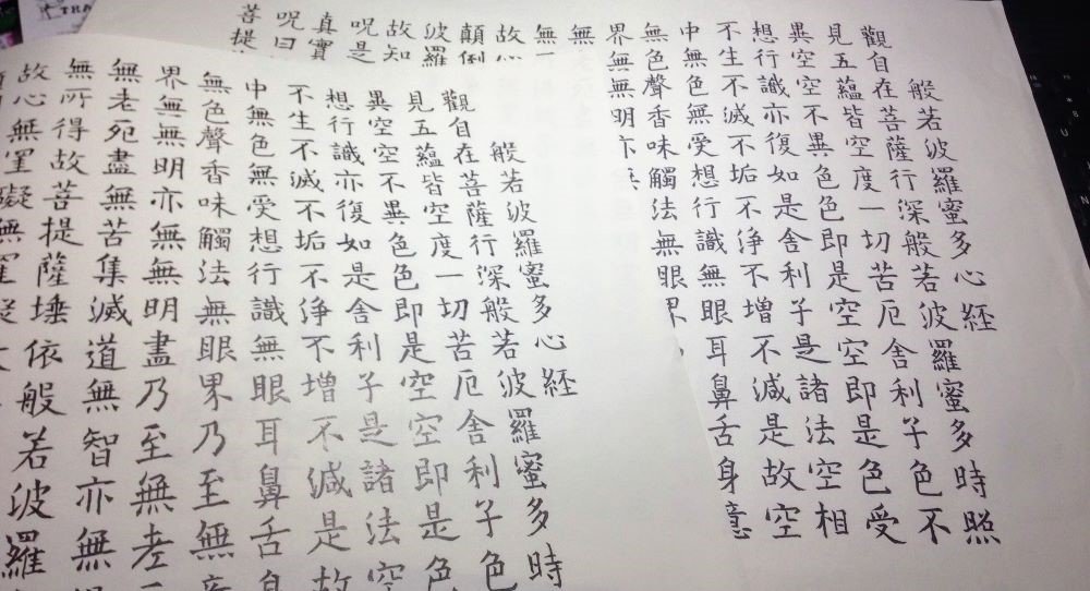 鈔寫經文時,視線專注於每一個字。每一個筆畫都帶著敬意落在紙上,像是在將古老的智慧一筆一筆地引入心田。筆墨緩慢地流轉,心境也隨之沉澱,如同湖面上的波紋逐漸平息,最終恢復鏡般的澄澈。在這個過程中,心神完全投入於當下,過去的煩憂、未來的不確定,都消融在這個靜謐的時刻裡。