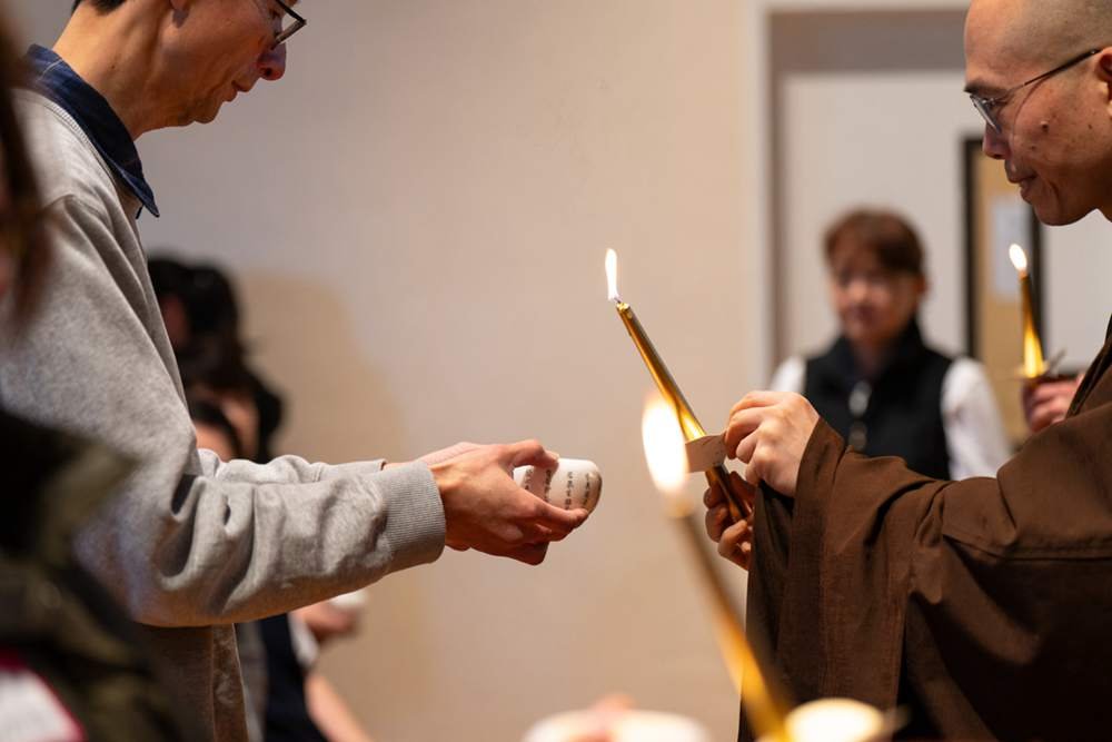 活動最後的傳燈儀式,由三位常住法師為與會大衆一一點燃手中的菩提燈缽,監院常襄法師也勉勵大家齊發一個個人於活動結束後,可以確切落實在生活中的小願望, 比如:開始每天禪修,改變一個習慣,讓自己朝向「慈悲對待人、智慧處理事」的方向前行,也讓這場每年舉辦緬懷 聖嚴師父的「傳燈日」活動,實質意義得以延續,以行動來感念師恩。