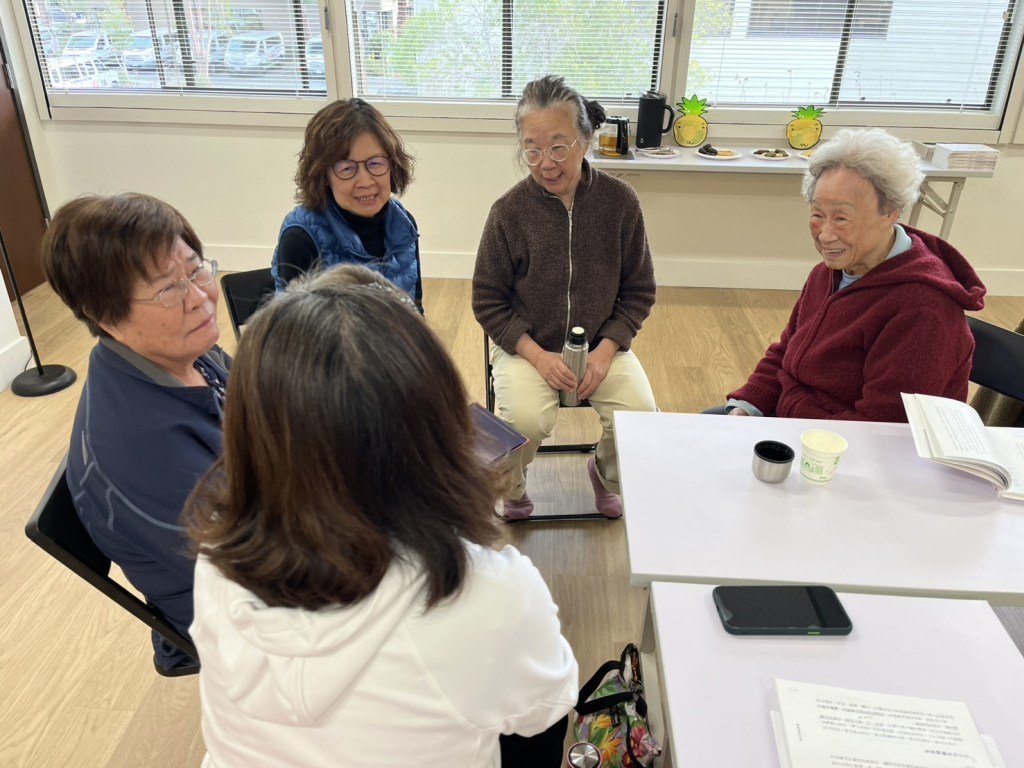 而在〈發悲願心,傳承佛法〉章節中,方丈和尚果暉法師更進一步指出,大乘佛法的特質,就在奉獻利他的菩薩道。個人除了不斷地實踐佛法來自我提升外,更重要的是發起悲願心,將佛法的智慧與慈悲延續與分享。導讀的師姊還分享了「修行」並非只是為了自己離苦得樂,而是要將這份體悟轉化為對他人的關懷與幫助,並請我們思考如何在現實生活中落實這些觀念?當我們願意為他人著想,甚至在困難中仍保持利他的初心,這樣的願力便能成為推動自己前進的力量,也讓佛法在生活中真正地活起來。