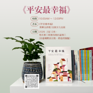 矽谷中心 - 課程講座 類別 課程講座 地點 法鼓山矽谷中心 線上 語言 以中文進行 以英文進行 以雙語進行 2 月 2026 平安最幸福-心靈環保讀書會Repeating Event 在瞬息萬變的網路資訊、媒體社交訊息充塞時 […] 2 月 10 10:00 am - 12:00 pm 法鼓山矽谷中心 No event found!